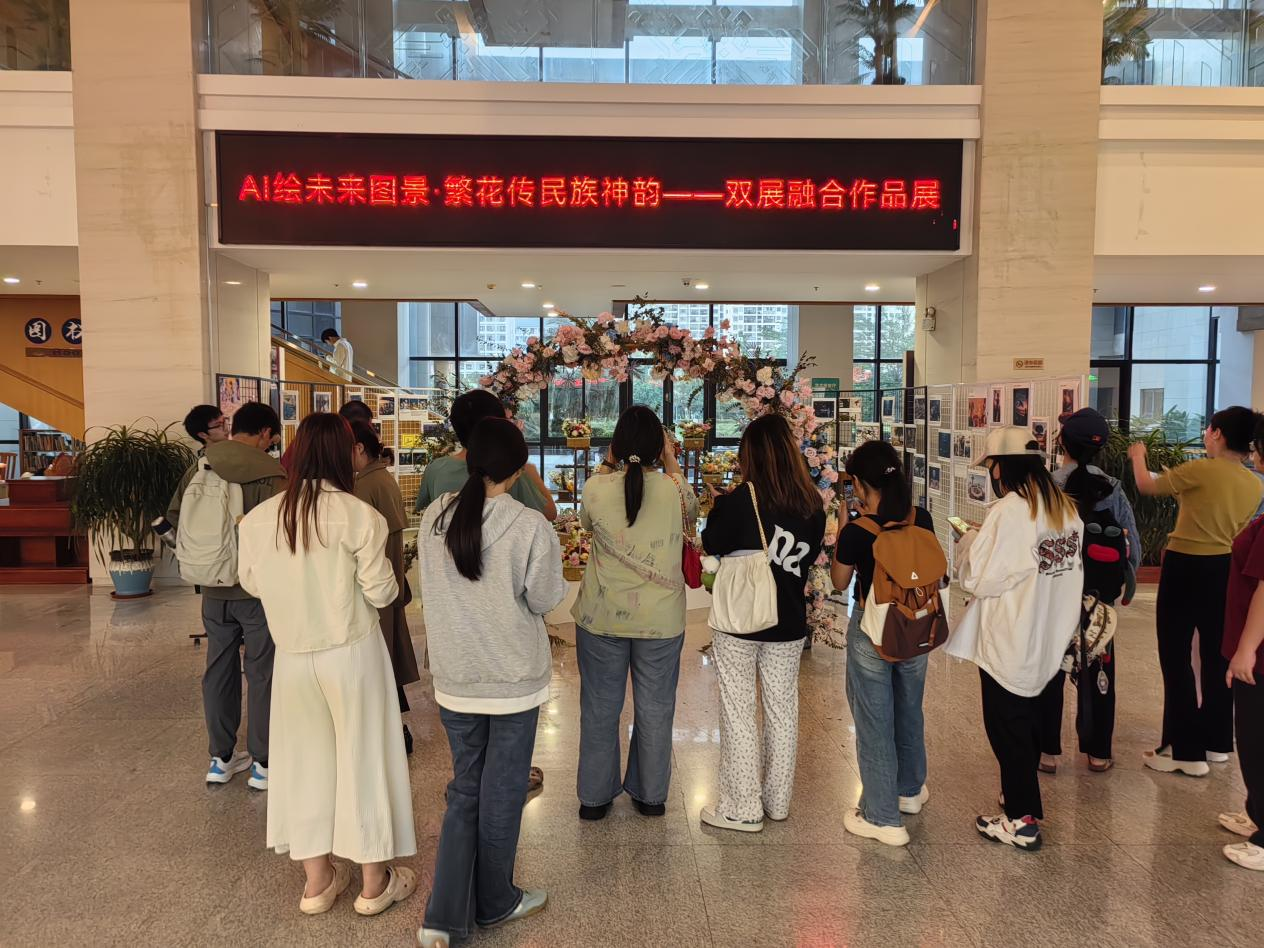 近日,由海南省社科联和三亚市社科联指导,海南热带海洋学院图书馆联合民族学院精心打造的“AI 绘未来图景,繁花传民族神韵——双展融合作品展”在图书馆一楼展厅正式开展。