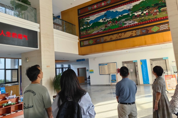李敬维副馆长热情地充当起“向导”,率先引领着远道而来的客人们进行了参观。她向同仁们全方位地介绍起图书馆的整体情况。从图书馆最初规划时所秉持的先进理念,到日常运营中严谨有序的模式;从丰富多元的资源储备体系,到独具特色的服务亮点,李副馆长都一一讲解,让客人们对图书馆的“全貌”有了初步且深刻的印象。李副馆长带领贵宾们参观了大厅布展、期刊阅览室、电子阅览室、馆藏书库、特藏书库以及博物馆等区域。深圳城市职业学院的同仁们对我馆独具特色的馆舍风貌和丰富多元的文化氛围给予了高度赞扬。